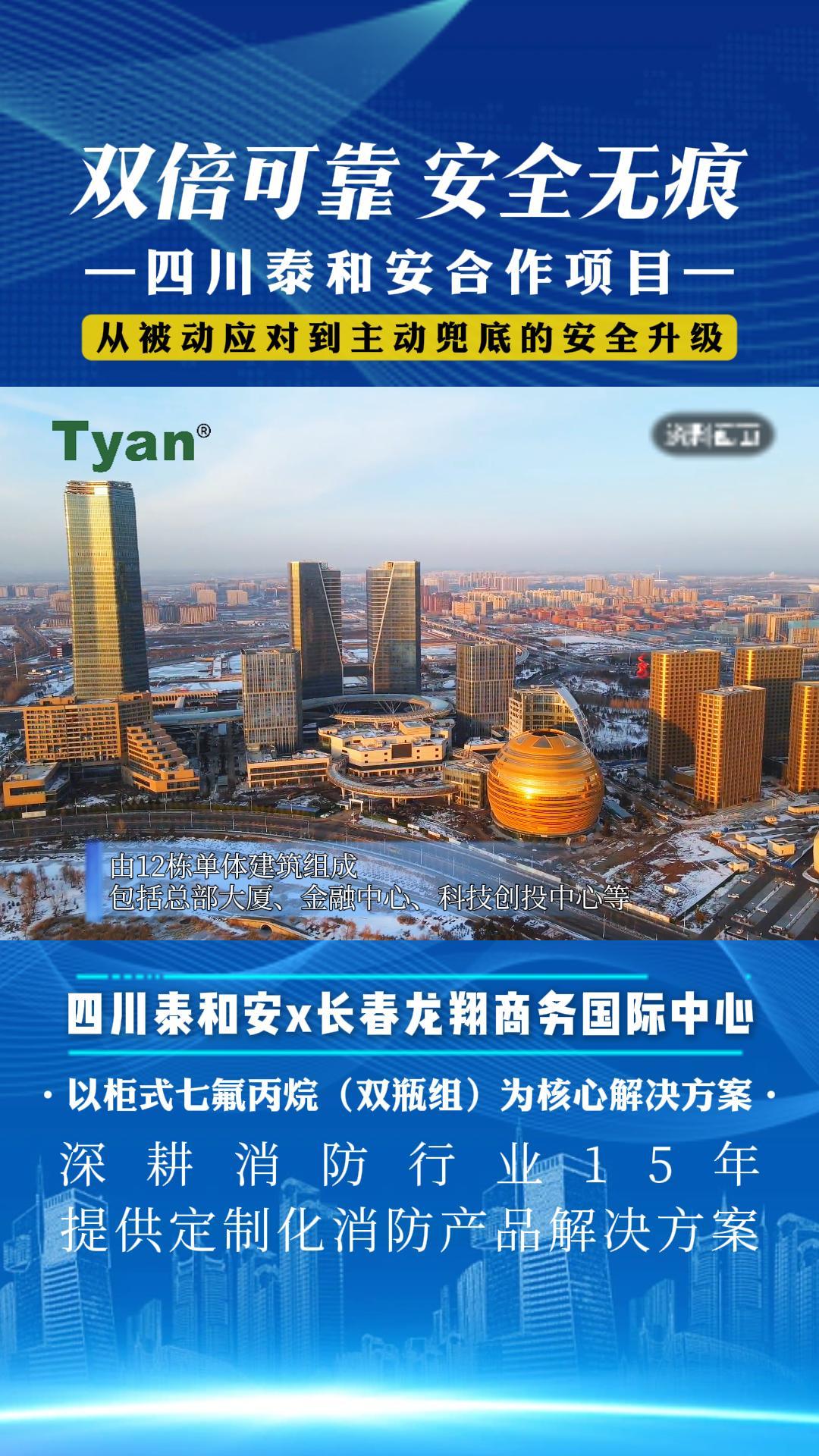 项目亮点:长春龙翔商务国际中心,作为城市商务封面与高端产业聚合地,以现代化的建筑集群和密集的商务人流,成为城市经济发展的重要引擎。四川泰和安以柜式七氟丙烷灭火装置双瓶装为核心,为其打造了一套消防解决方案:
