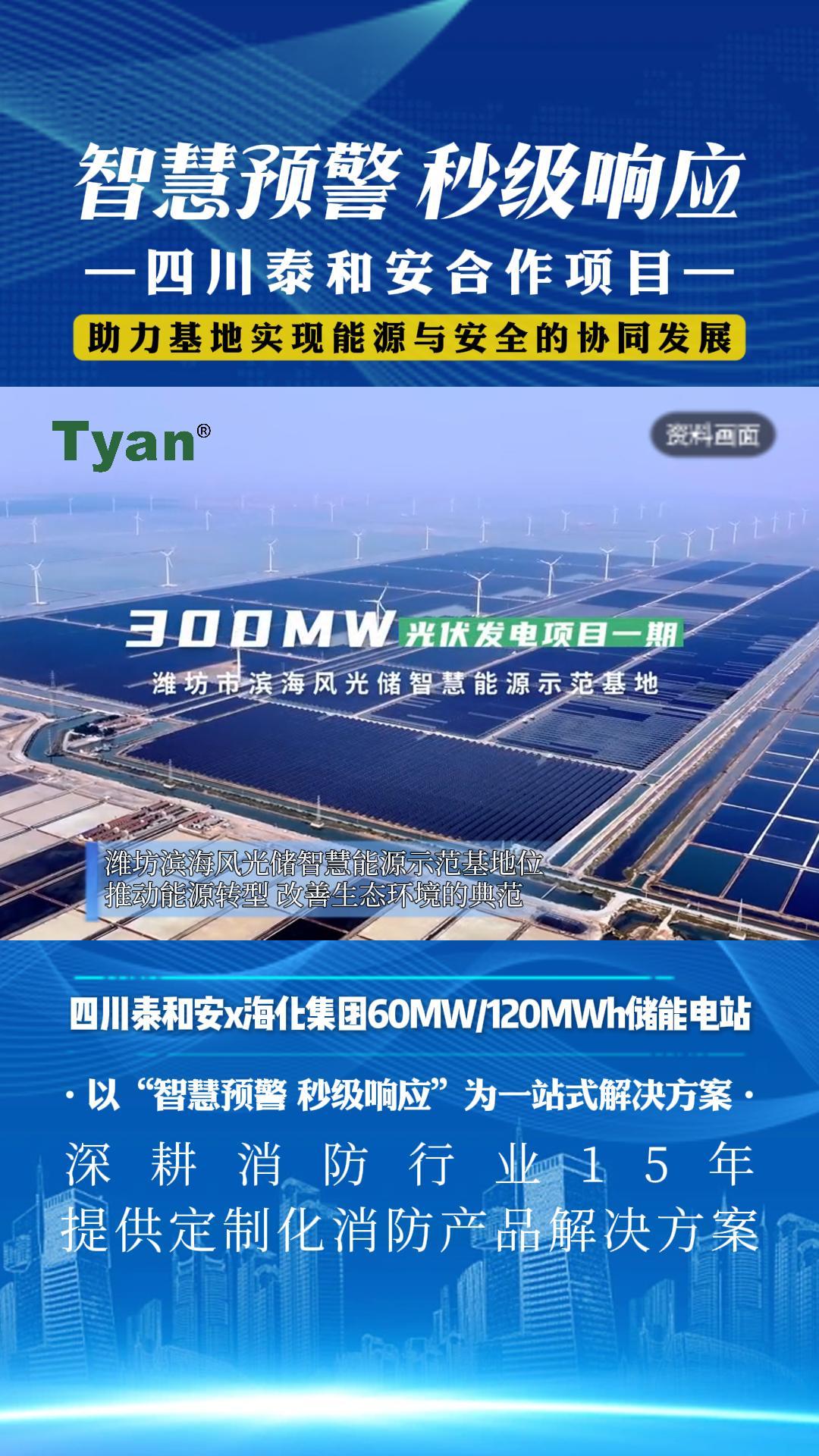 在山东潍坊滨海,一座融合风、光、储智慧的能源基地正成为能源革命的先锋力量。海化集团60MW/120MWh储能电站持续为区域绿色发展注入稳定动能,而其消防安全保障,更是重中之重。面对储能安全的行业挑战,四川泰和安以“智慧预警-秒级响应”的一站式解决方案,为电站构筑坚实安全防线。