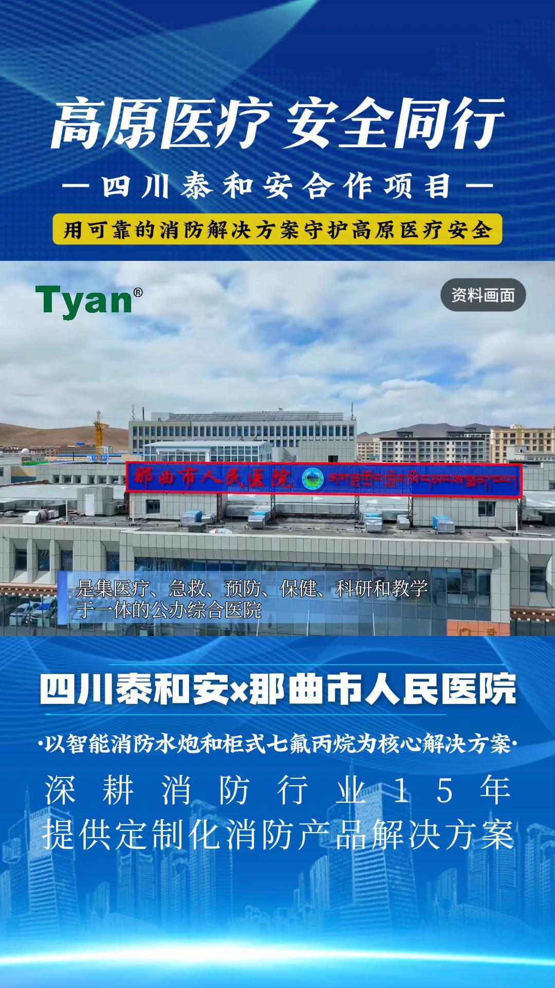 那曲市人民医院,扎根于藏北高原,是守护当地民众生命健康的重要医疗阵地,其消防安全至关重要。四川泰和安针对那曲人民医院的建筑布局和火灾风险点,部署了"柜式七氟丙烷+消防水炮"的双重防护系统,为医院构筑起立体化消防安全屏障