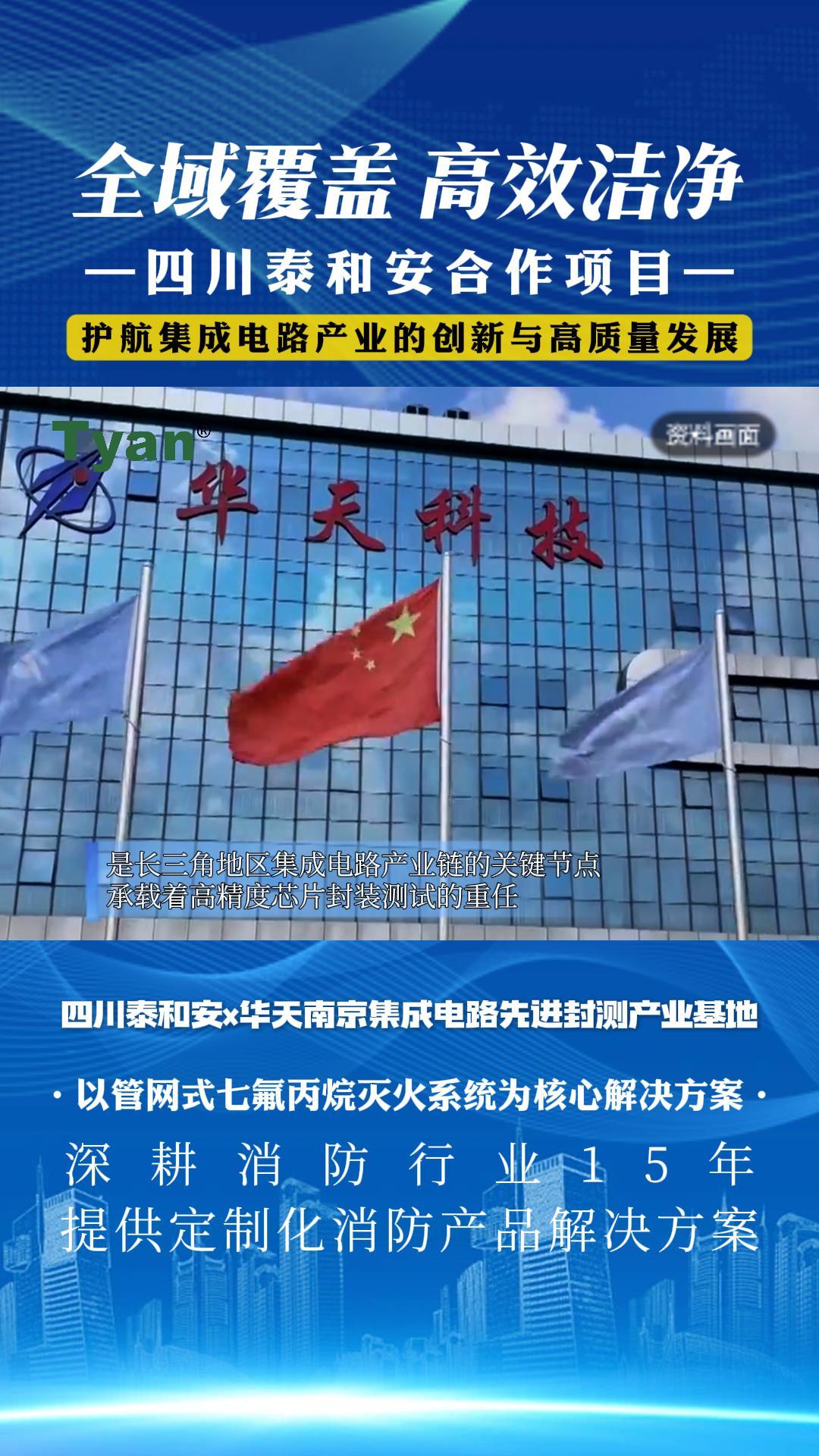 华天南京集成电路先进封测产业基地,长三角集成电路产业链的关键节点,承载着高精度芯片封装测试的重任。面对高精密、高价值的生产环境防护需求,四川泰和安部署了管网式七氟丙烷灭火系统